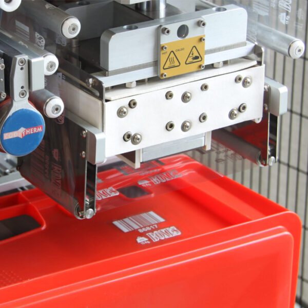 Coditherm H-PAD is ideal for printing in recessed areas of structured plastic containers in which the printing area is only slightly smaller than the recess itself and where roller printers cannot be used as a consequence. This model has a high-power hot pad transfer device. The pad is operated by a pneumatic piston capable of developing up to 22,8 kN. The ribbon guiding devices around the pad are designed to minimize clearance. The maximum dimensions of the hot pad are 95 x 150 mm.
