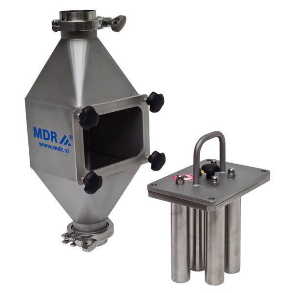 Selama pembersihan, elemen magnetik ditarik keluar dari pipa pelindung, sehingga bahan feromagnetik dapat jatuh ke dalam wadah atau corong yang telah disiapkan.